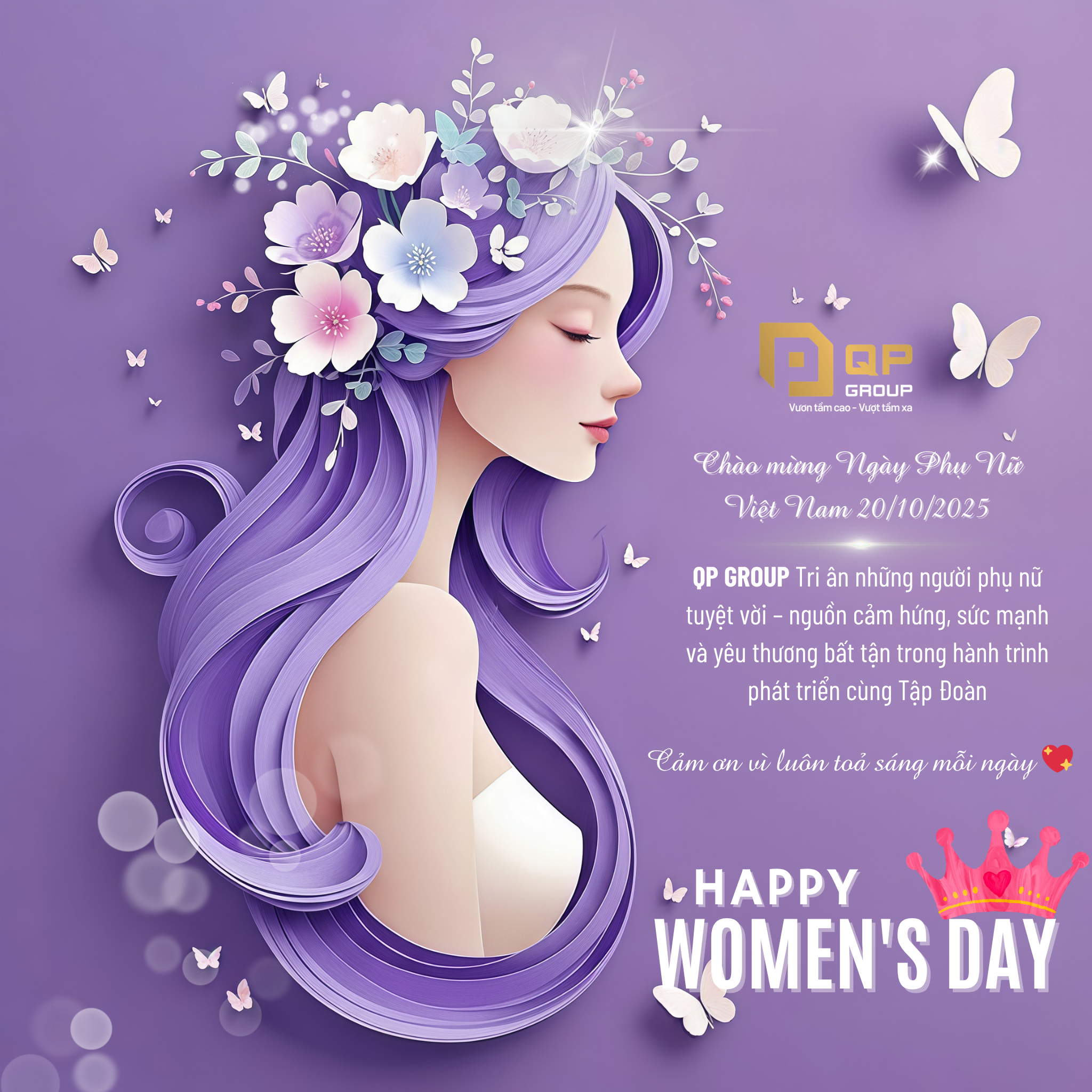🎉 Một lần nữa, Tập đoàn QP xin gửi lời chúc mừng tốt đẹp nhất đến toàn thể chị em phụ nữ – những bông hoa tỏa sáng trong công việc, trong cuộc sống và trong hành trình đồng hành cùng QP.